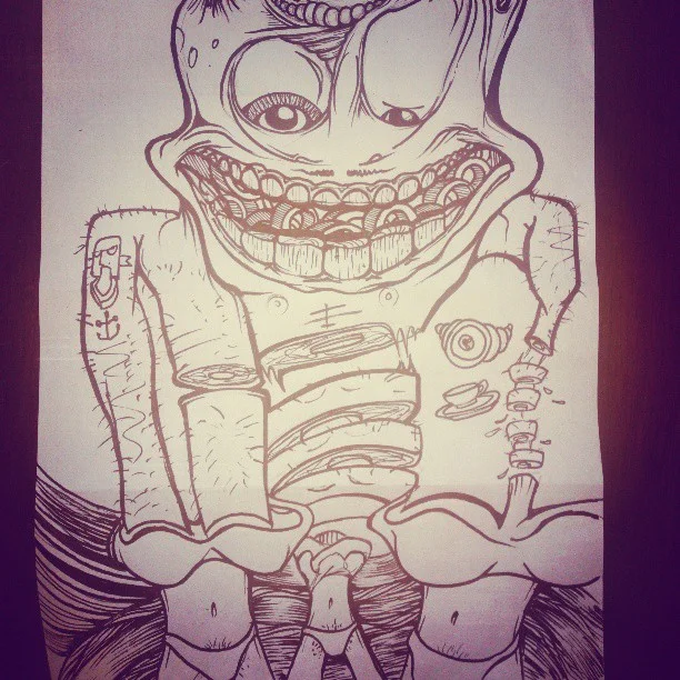 A cheeky collab with Ben Marriott. Taking turns drawing quarter. Full project coming soon. #illustration #art #design #drawing #sketch #sketchbook #blackandwhite #penandink #artist #surreal #beach #bikini #face #teeth #moustache #lips #portrait. #hair #bizarre