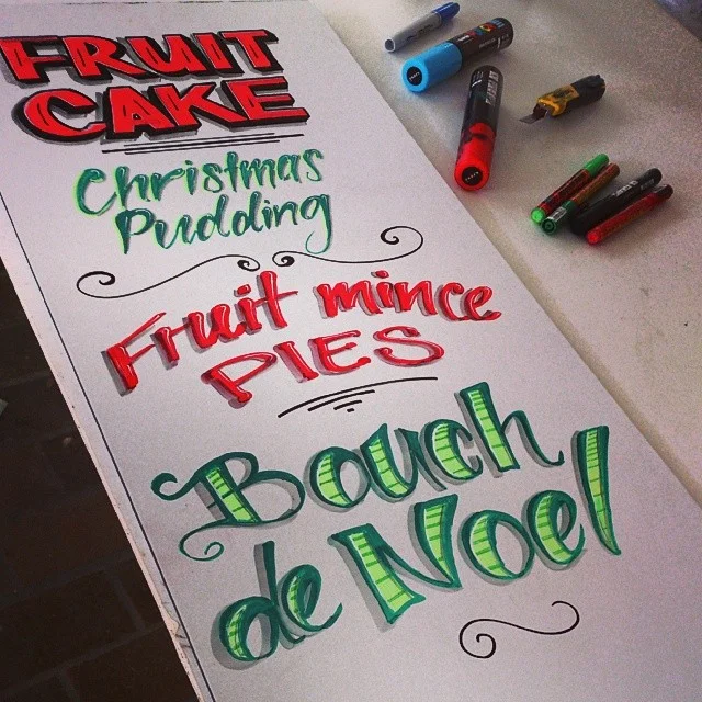 Cafe signage today. Must be close to Xmas again. Cicadas churning outside its a good summer day.