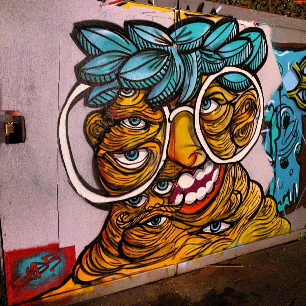 Face melting spray session 2 today. #face #melting #glasses #eyes #teeth #smile #streetart #graffiti #illustration #ink #spraypaint #wtf #sydney
