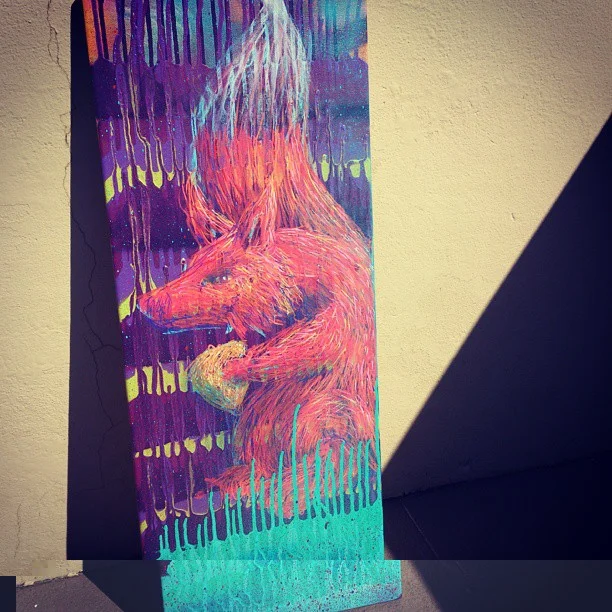 Foxy squirrel. Spray paint and markers 75 X 35 cm.