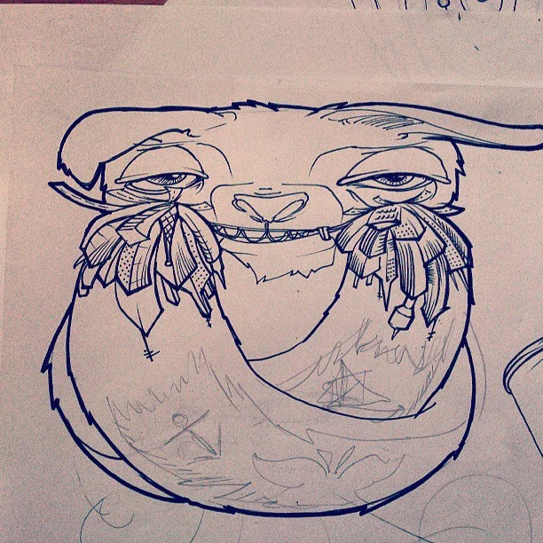 Work in progress. Ya dig? Tattoo sleeve ideas? #animal #Wtf #illustration #ink #paper #penandink #dog #gangster #tattoo #designer #artist #blackandwhite #pen #wip