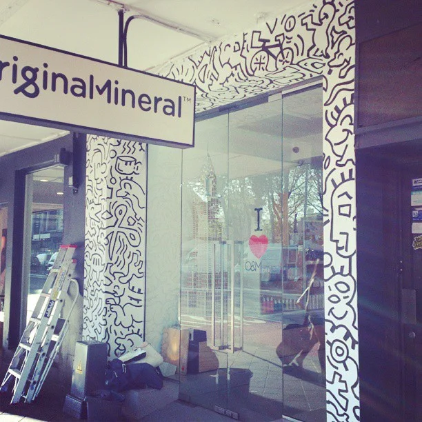 Working hard today on this storefront line work. #art #painting #retail #keithharing #impersonating #line #streetart #graffiti #sydney